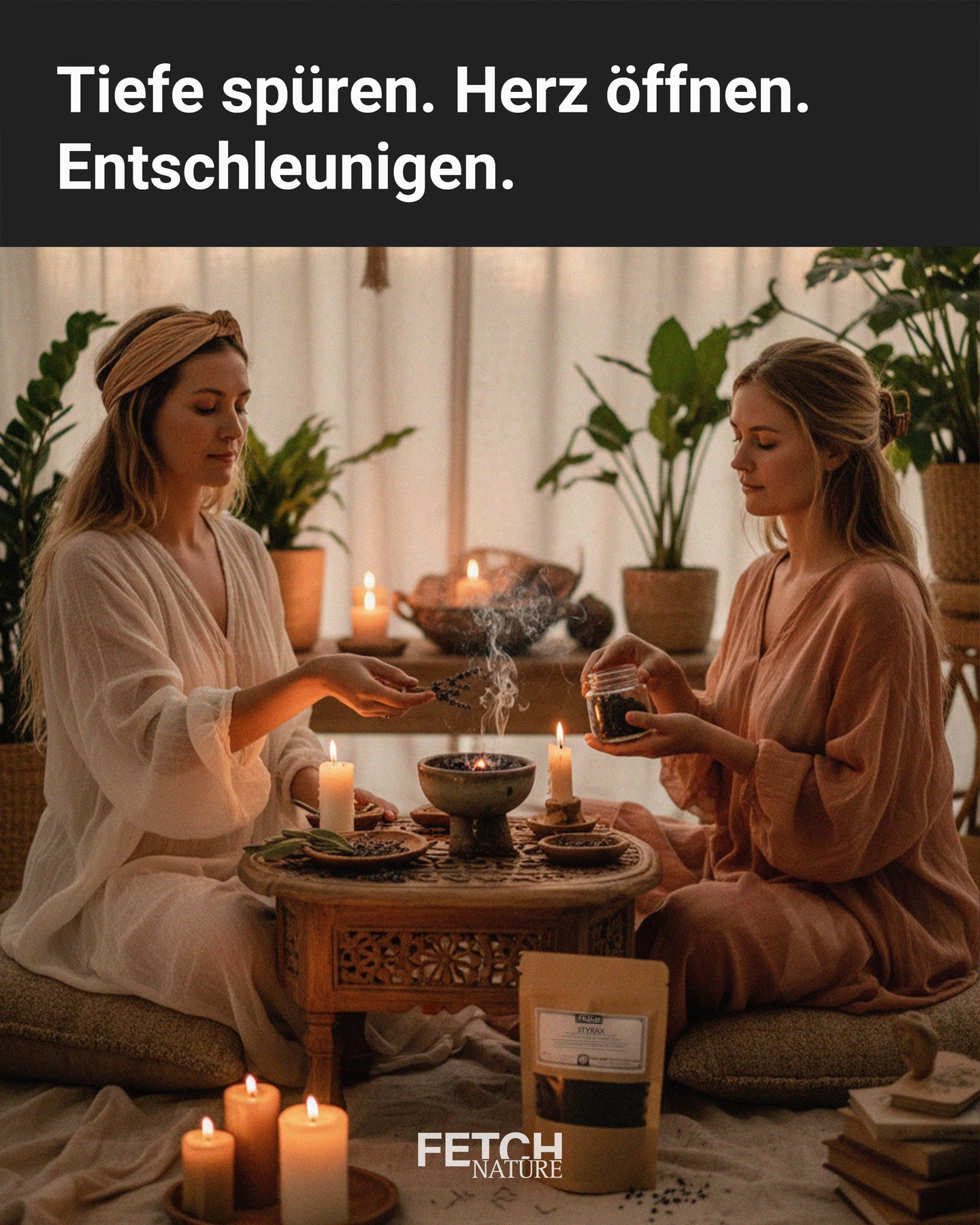 Der süßlich-warme Duft entfaltet sich langsam und wirkt beruhigend auf Körper & Geist. Styrax eignet sich perfekt für Abendräucherungen, Liebesrituale oder zur emotionalen Klärung.
