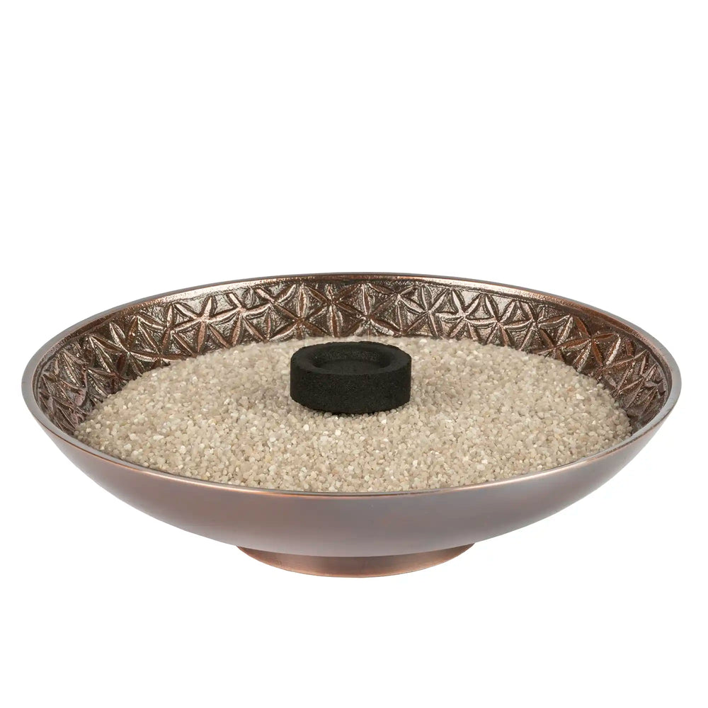 Die große Räucherschale aus Aluminium im Kupfer-Antik-Finish ist nicht nur ein funktionales Räucheraccessoire, sondern auch ein echter Blickfang für Altar & Wohnraum.