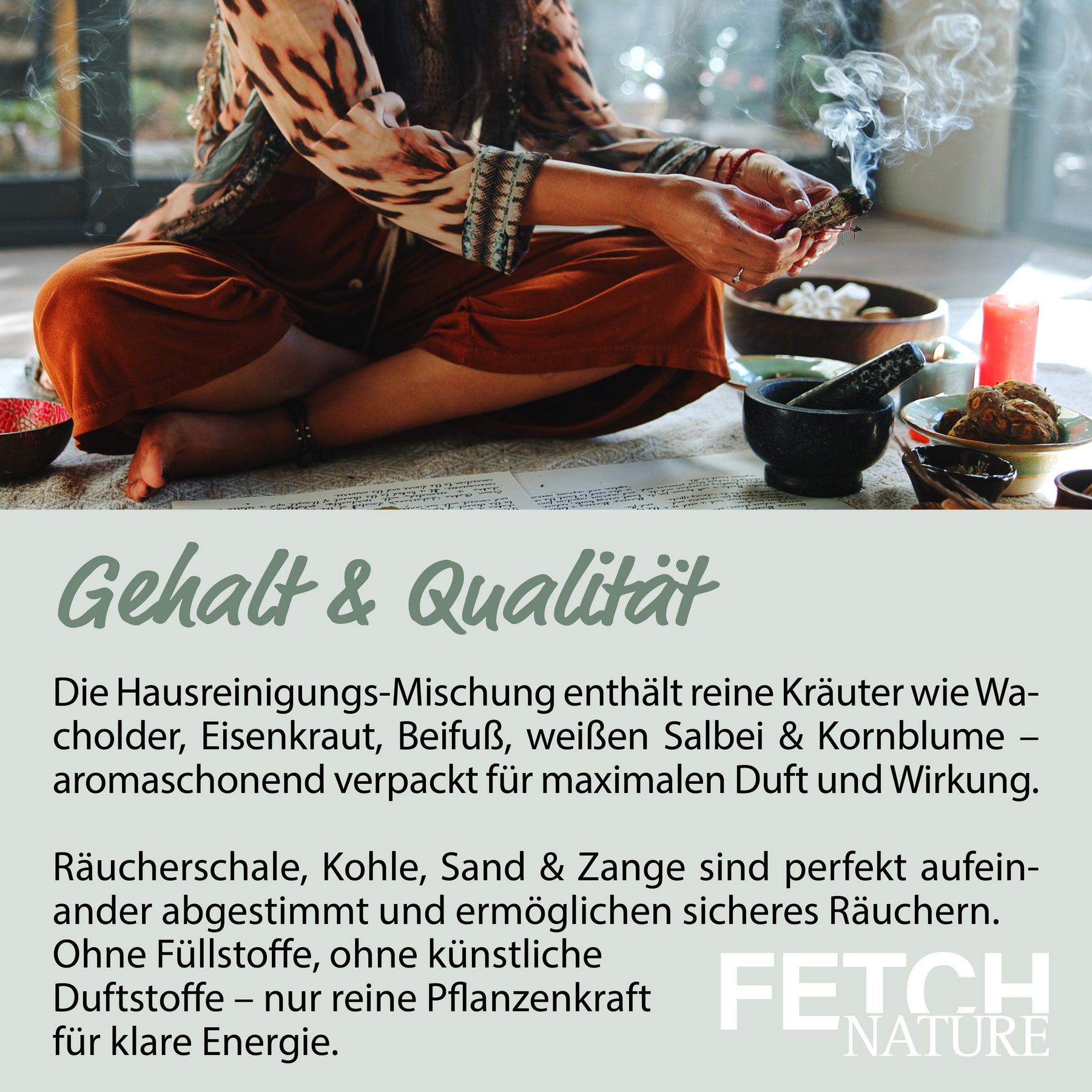 Dieses Set verbindet traditionelles Räucherwissen mit hochwertigen Zutaten und modernem Design. Ob zur energetischen Hausreinigung oder zur Meditation – du hast alles zur Hand, um dein Zuhause in einen Ort der Klarheit zu verwandeln.