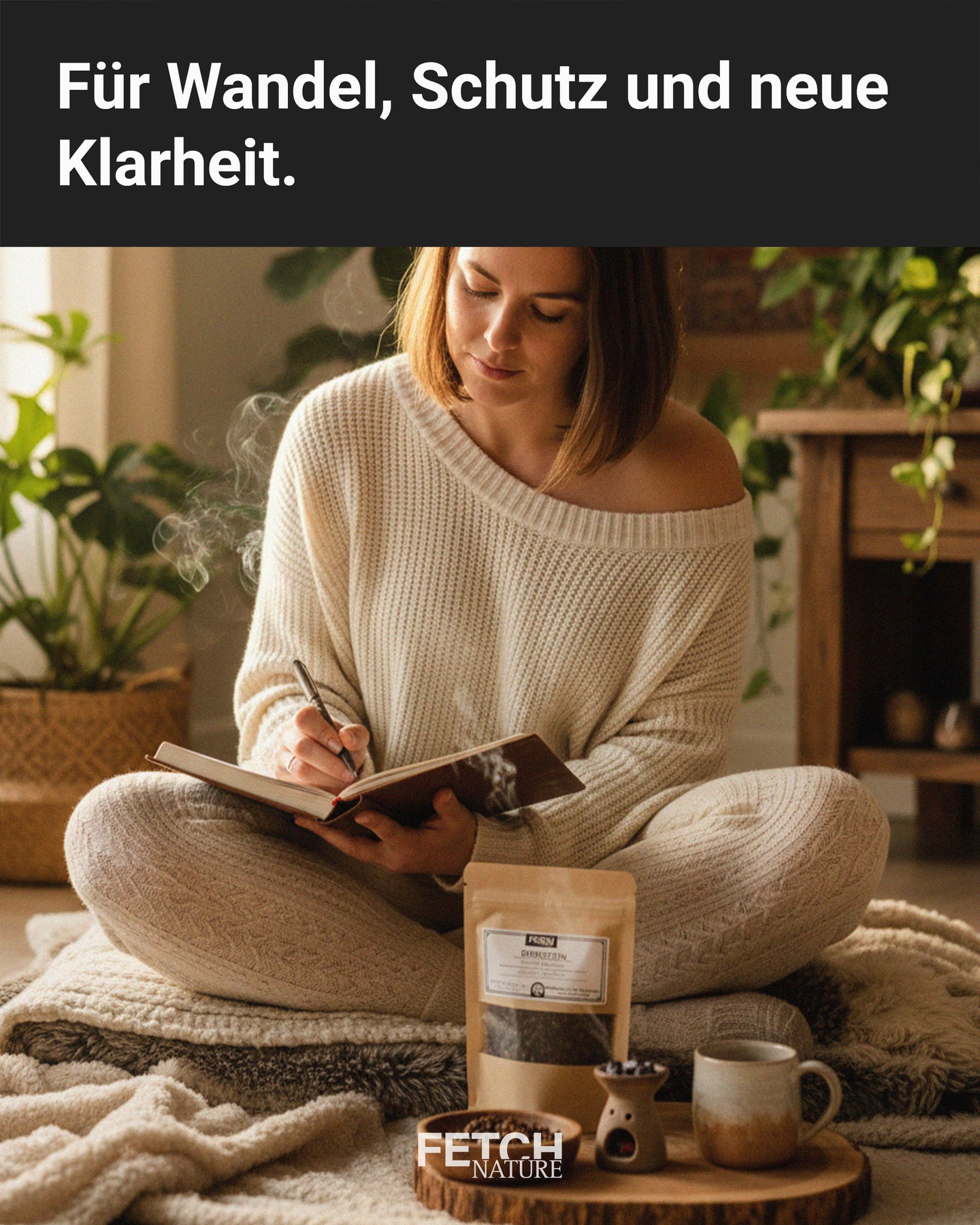 Besonders unterstützend bei Neubeginn, Loslass-Ritualen oder zur energetischen Stabilisierung. Lässt sich gut mit Myrrhe oder Dammar kombinieren.