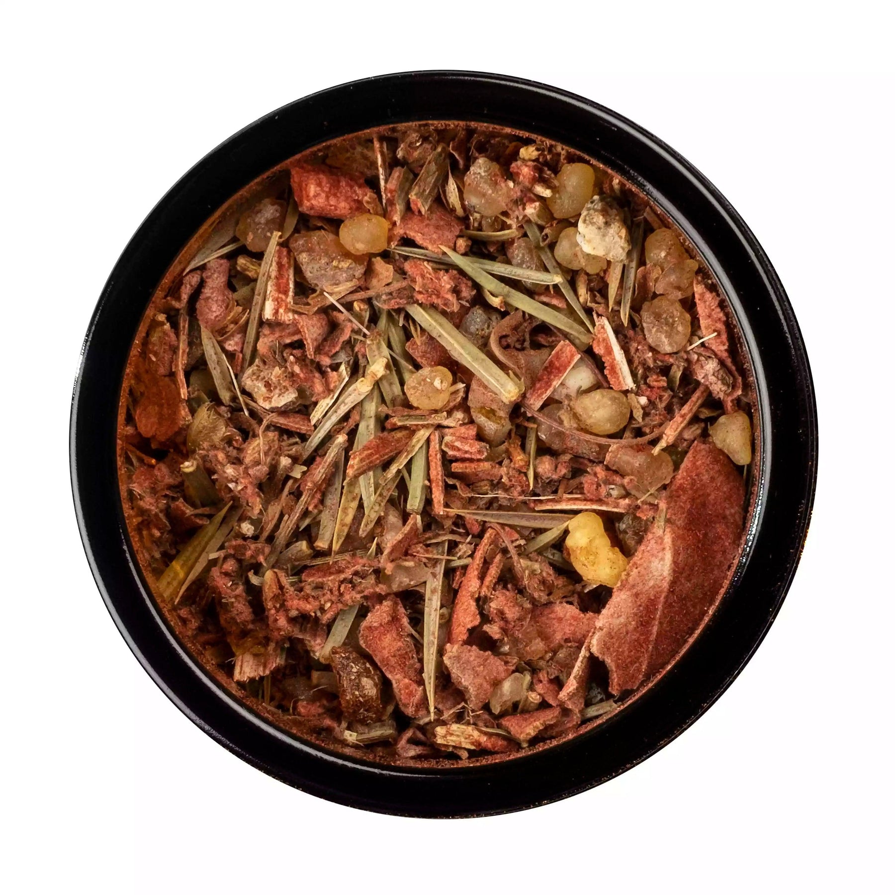 Eisenkraut, Wacholderspitzen, Drachenblut, Bernstein, Beifuß, Weißer Salbei, Salbei, Mistelkraut